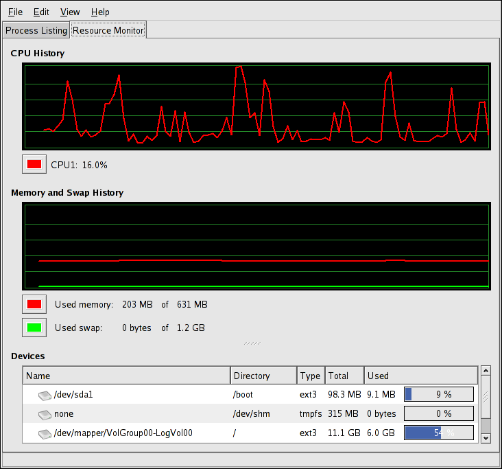 If prefer a graphical interface for free, you can use the GNOME System Monitor. To start it from the desktop, go to Applications (the main menu on the panel) => System Tools => System Monitor or type gnome-system-monitor at a shell prompt (such as an XTerm). Choose the System Monitor tab.