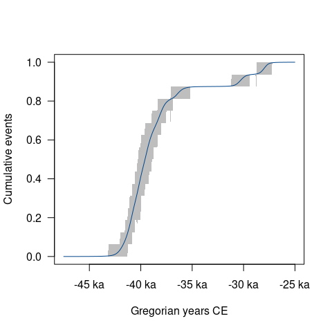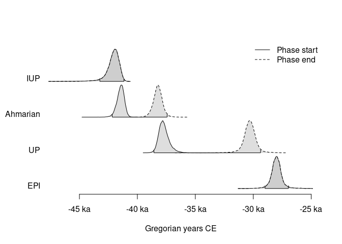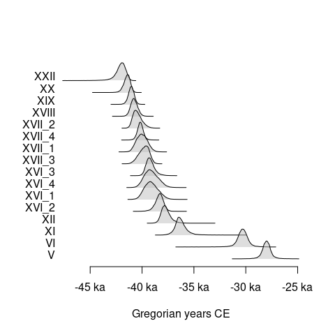 These examples use data available through the ArchaeoData package which is available in a separate repository. ArchaeoData provides MCMC outputs from ChronoModel, OxCal and BCal.