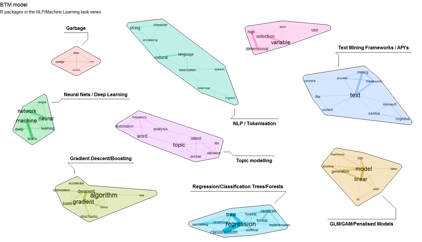 This is an R package wrapping the C++ code available at https://github.com/xiaohuiyan/BTM for constructing a Biterm Topic Model (BTM). This model models word-word co-occurrences patterns (e.g., biterms).