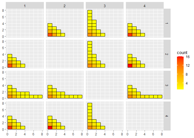 and can be easier to read since it is only a single plot. The \((i,j)\) entry shows the maximum value for
