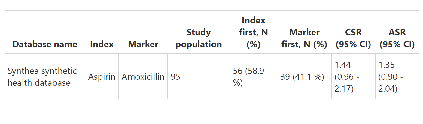 <- summariseSequenceRatios(cohort = cdm$aspirin_amoxicillin)