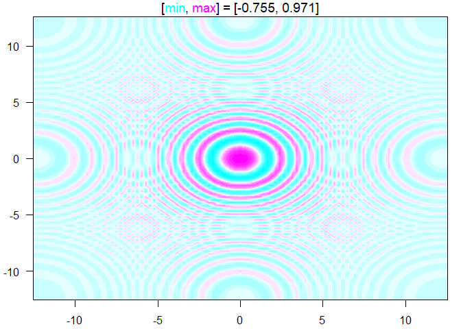 <- function(r) cos(r[1]^2 + r[2]^2)*exp(-sqrt(r[1]^2 + r[2]^2)/(2*pi))