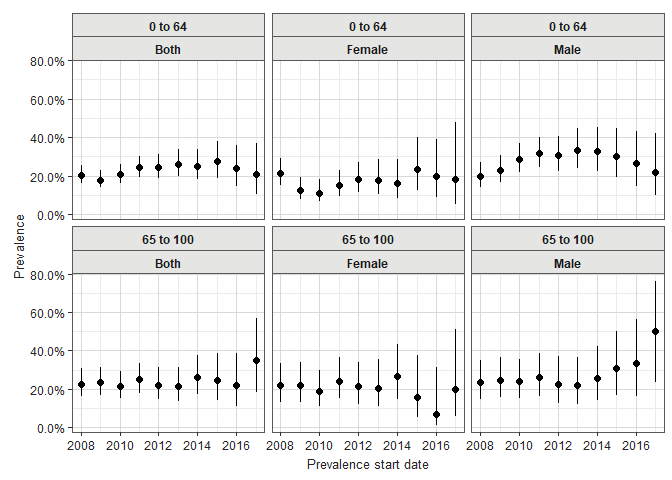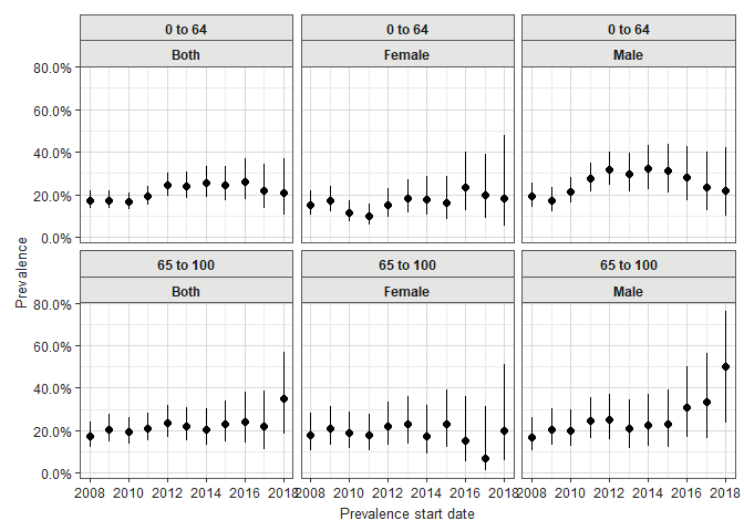 )plotPrevalence(prev_period, facet = c("denominator_age_group", "denominator_sex"))