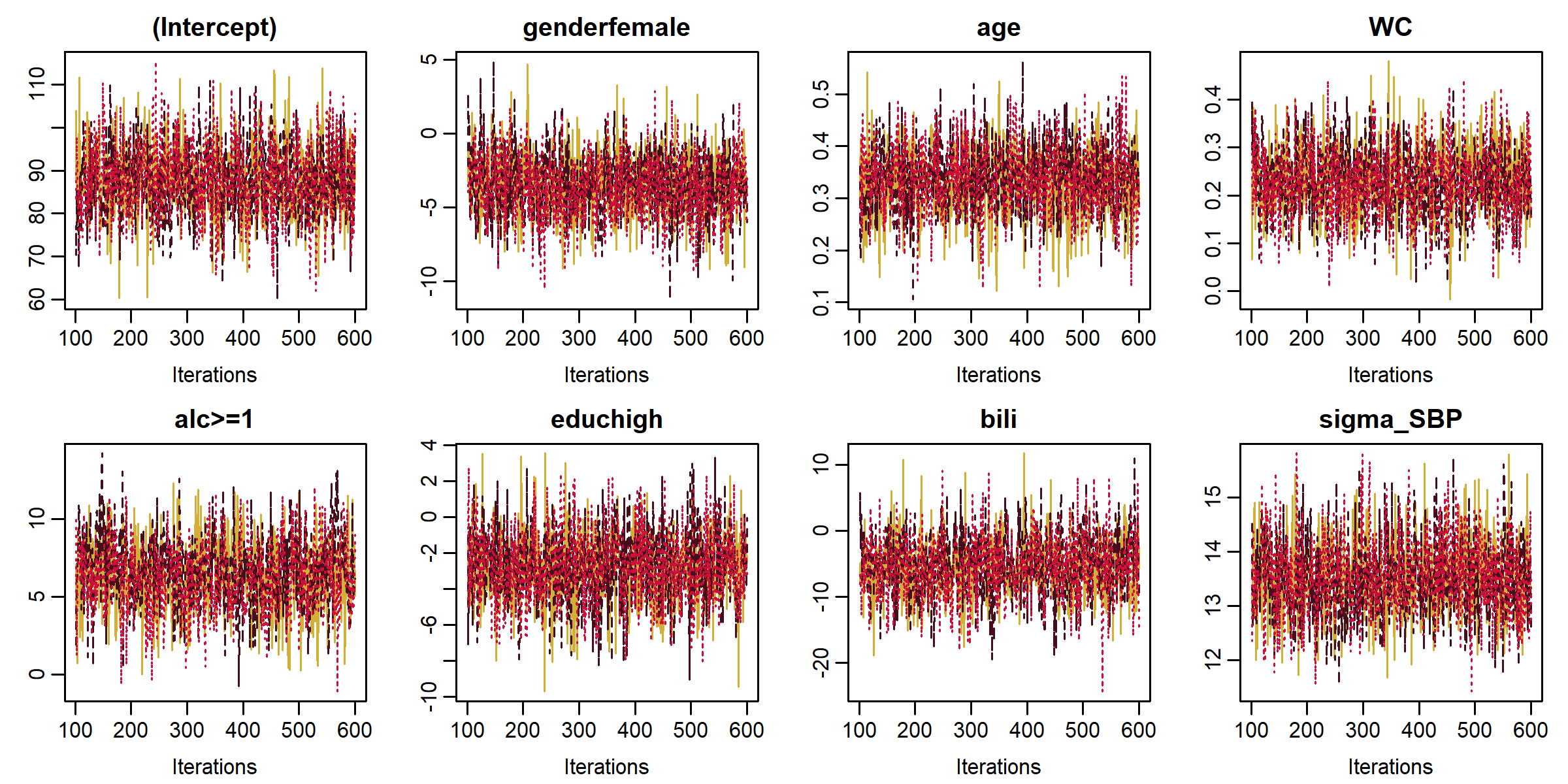 data = NHANES, n.iter = 500, progress.bar = 'none', seed = 2020)