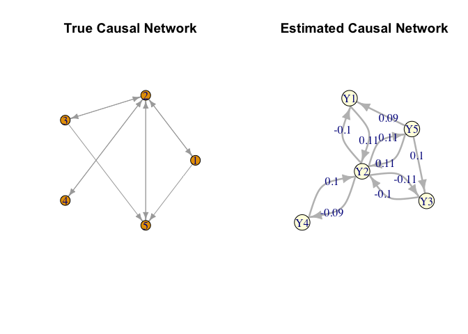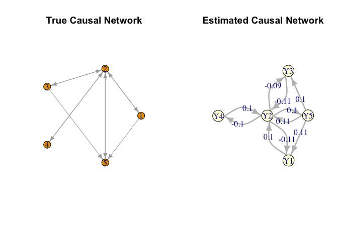 layout = igraph::layout_in_circle, main = "True Causal Network")