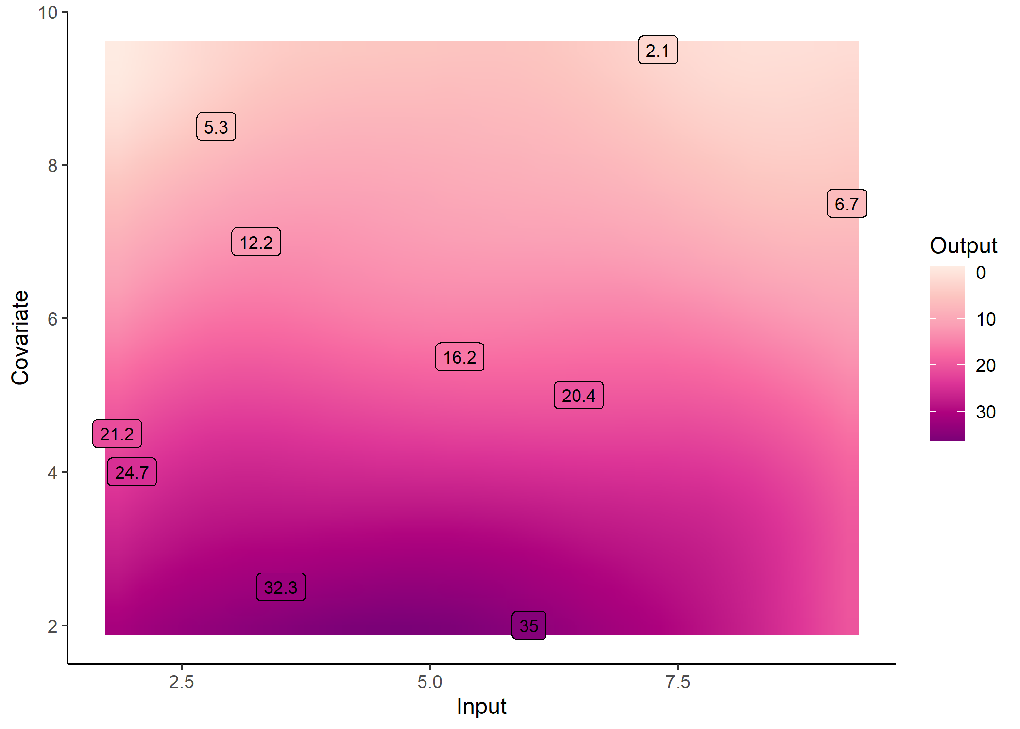 Several other arguments are available in dedicated plotting functions to offer extended options in the display of results. For instance, the GP predictions can be represented as a heatmap of probabilities: