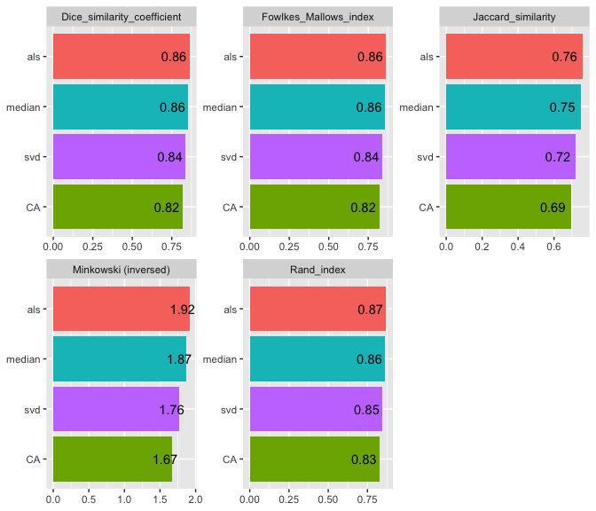 #> | | Jaccard_similarity| Dice_similarity_coefficient| Rand_index| Minkowski (inversed)| Fowlkes_Mallows_index|