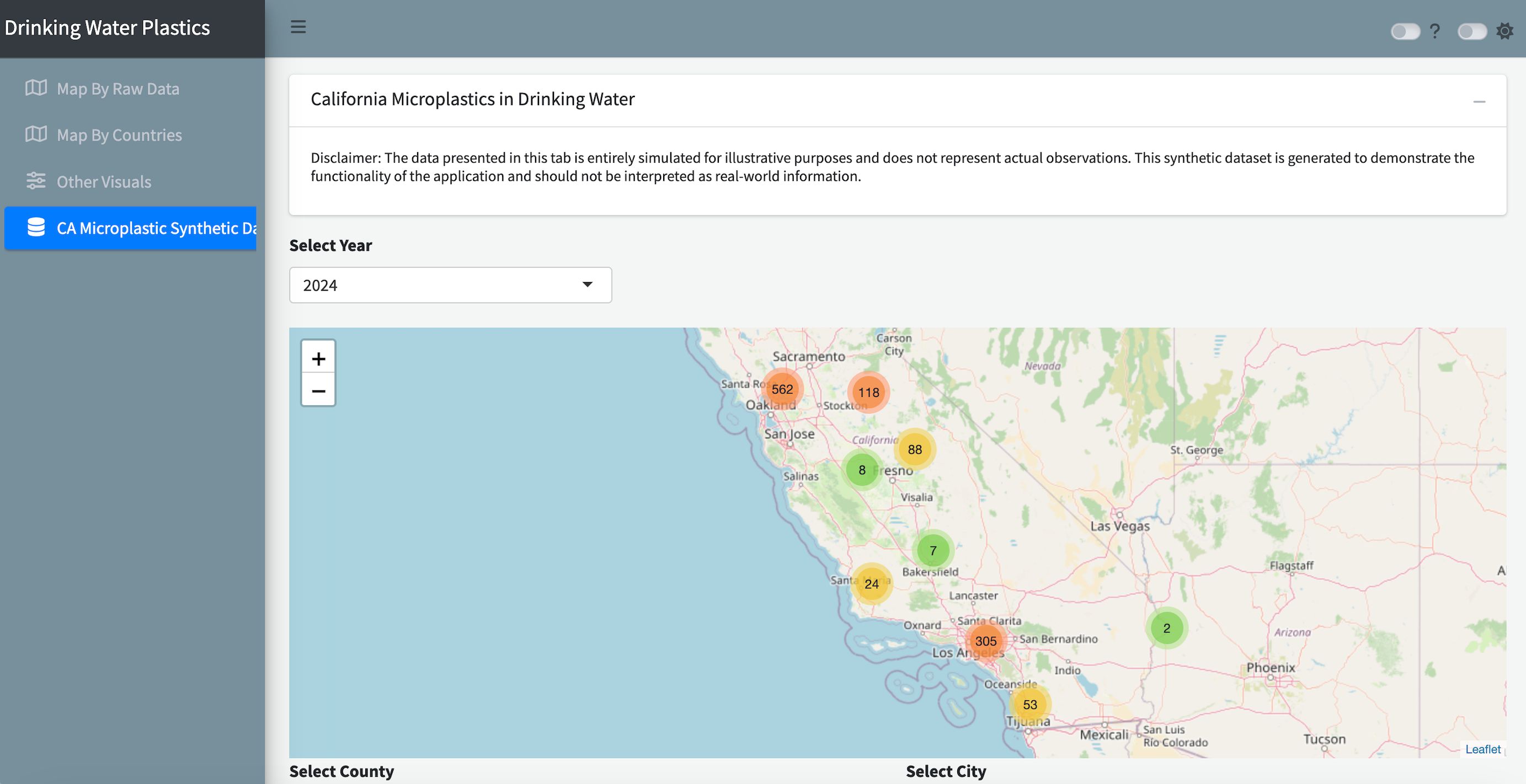 The Data Visualization Tool allows users to analyze microplastics data through maps, plots, and tables. We also aim to integrate shared data from the Validator tool. The code for the app is in /inst/apps/data_visualization.