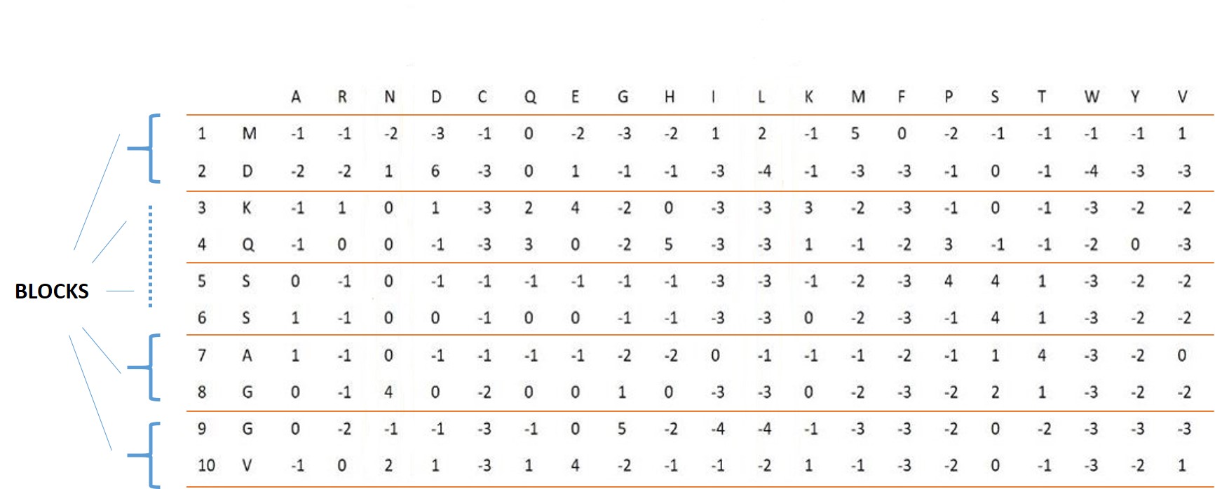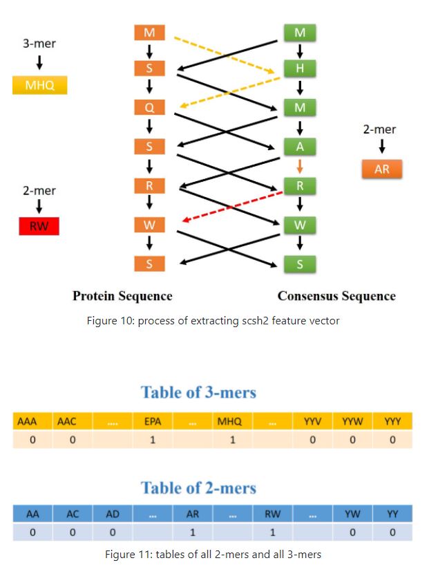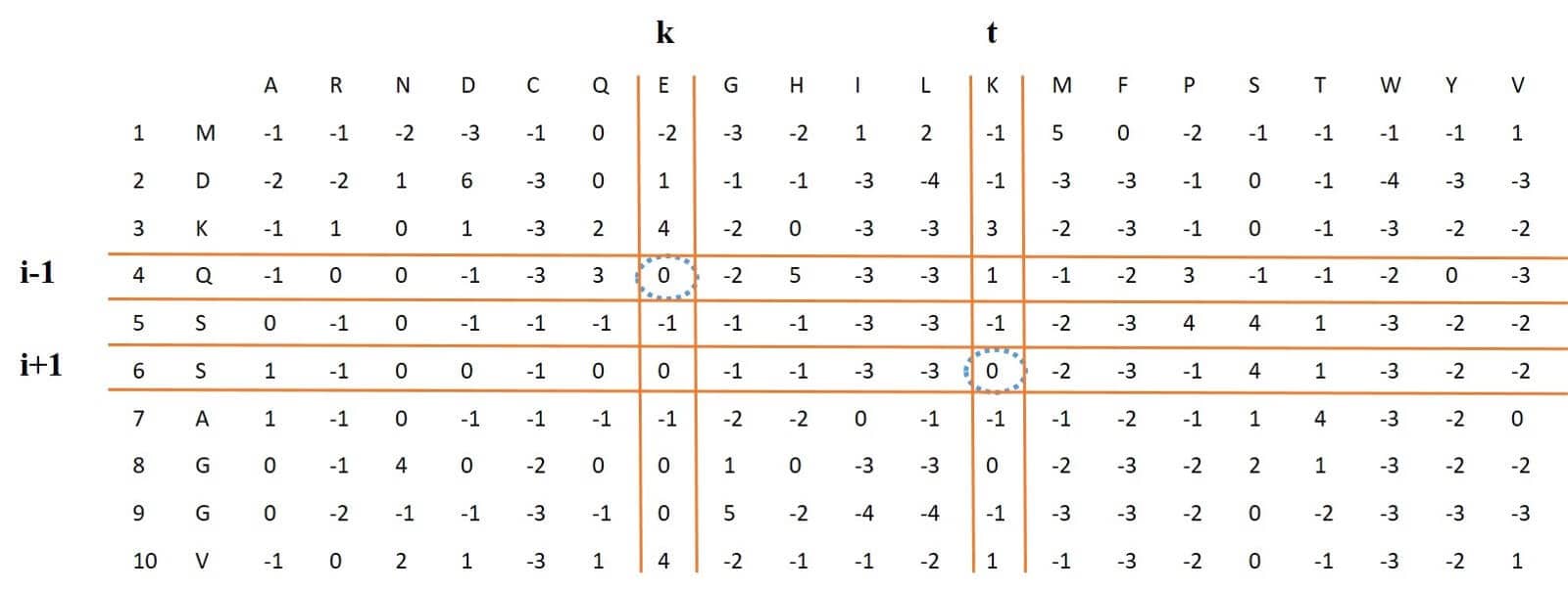 In this group of features, in order to use uniform dimensions to show proteins of different lengths, in the first step, the average evolutionary score between adjacent residues is calculated using the following equations: