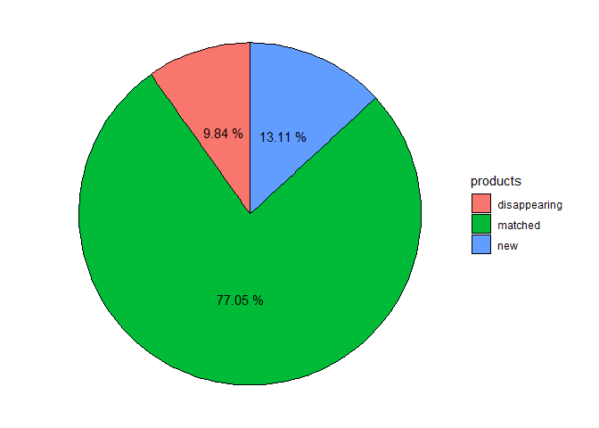 The second one, dataMATCH, can be used to demonstrate the data_matching function and it will be described in the next part of the guidelines. Generally, this artificial data set contains the following columns: time - dates of transactions (Year-Month-Day); prices - prices of sold products; quantities - quantities of sold products; codeIN - internal product codes from the retailer; codeOUT - external product codes, e.g. GTIN or SKU in the real case; description - descriptions of sold products, eg. ‘product A’, ‘product B’, etc.
