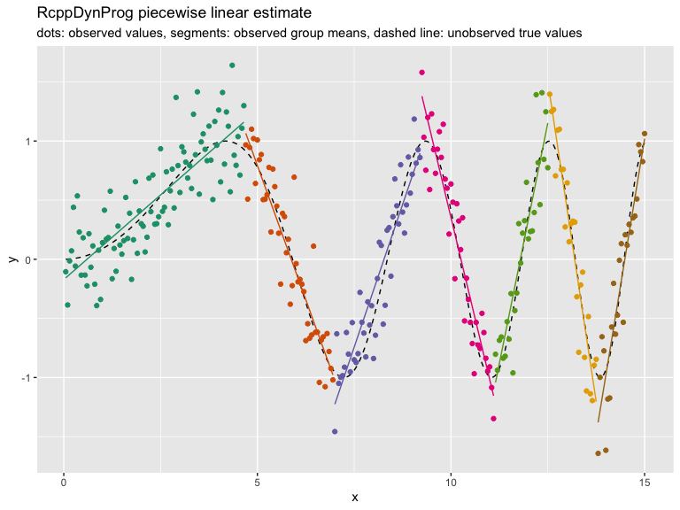 ggtitle("RcppDynProg piecewise linear estimate",