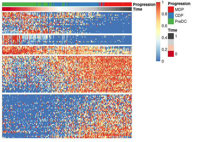 modules draw_trajectory_heatmap(expr_sel, traj$time, group_name, modules)