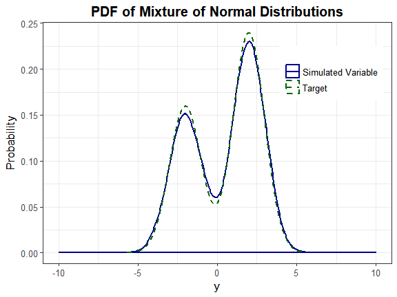 plot_simpdf_theory(sim_y = Nmix2$Y_mix[, 1], ylower = -10, yupper = 10,