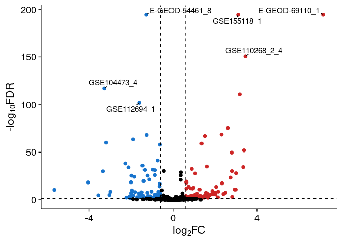 #> 3 E-GEOD-5… -1.28 2.25e-195 SOX9 E-GEOD-5… Day18vsDay2 Temporal g…
