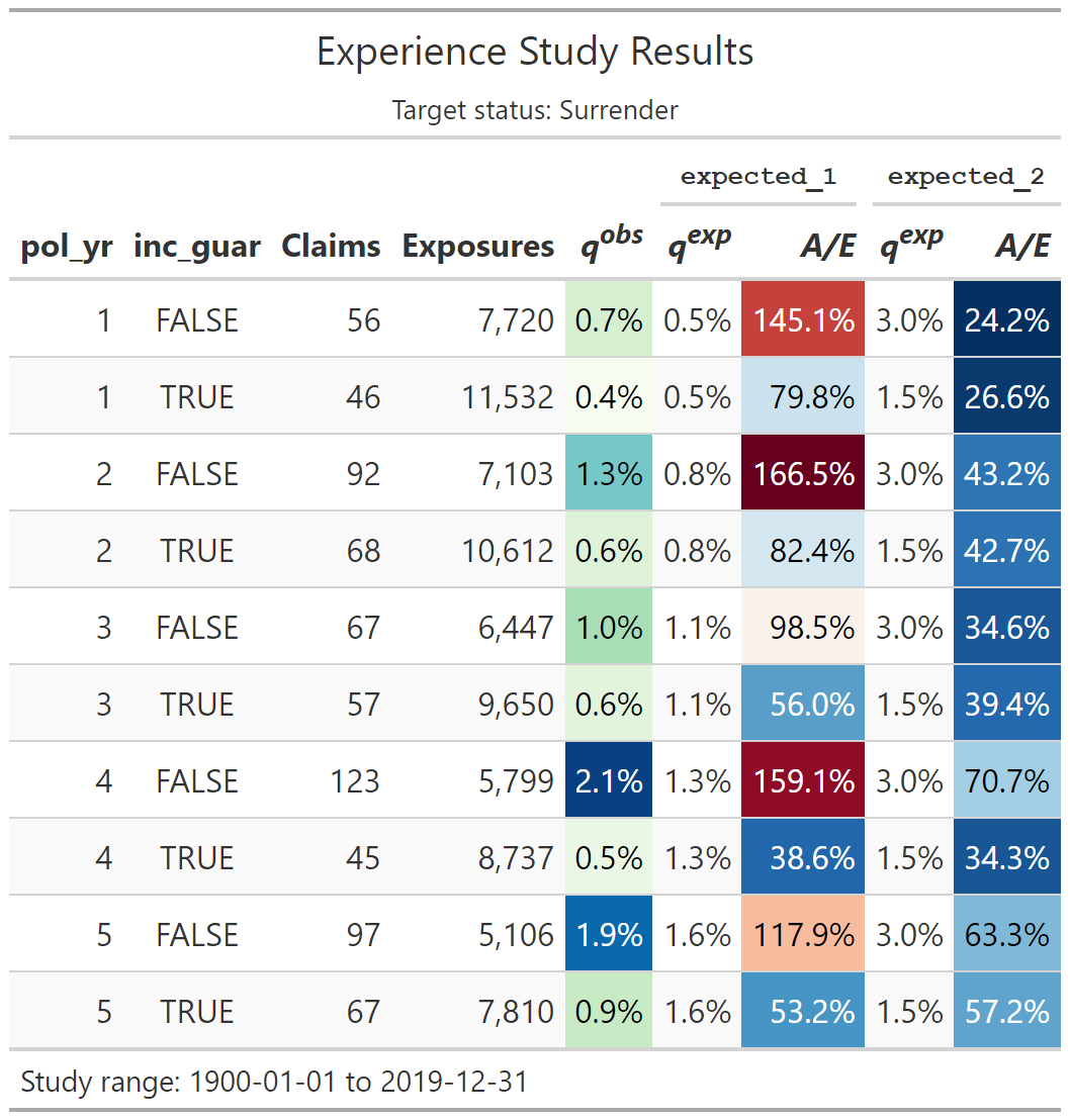 #> ── Experience study results ──