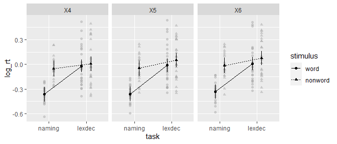 #> $ task : Factor w/ 2 levels "naming","lexdec": 1 1 1 1 1 1 1 1 1 1 ...