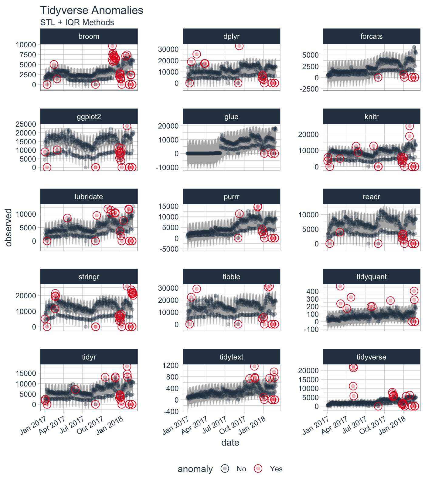 labs(title = "Tidyverse Anomalies", subtitle = "STL + IQR Methods")