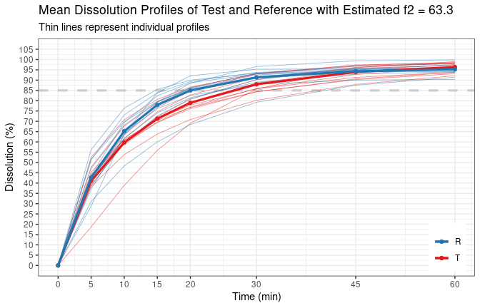 statistics of all individual dissolution profiles.print(d.ref$sim.summary)