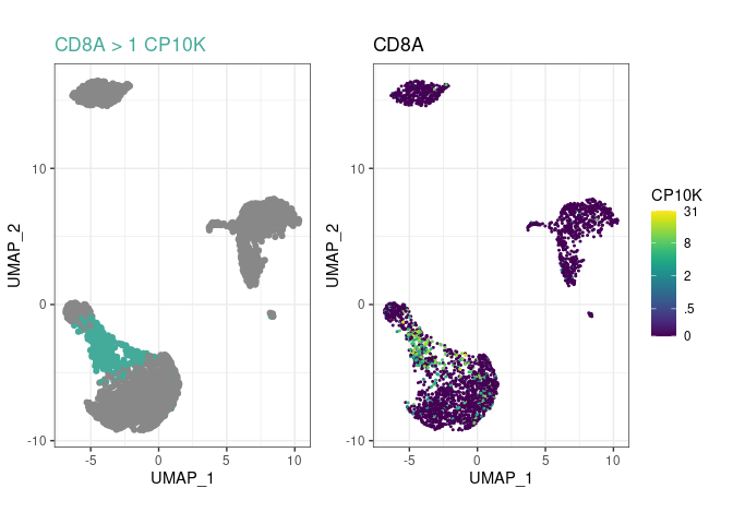 In cellpypes logic, CD3E+ cells are virtually indistinguishable from cells with high CD3E expression. We just can’t prove they all had CD3E mRNA due to data sparsity.