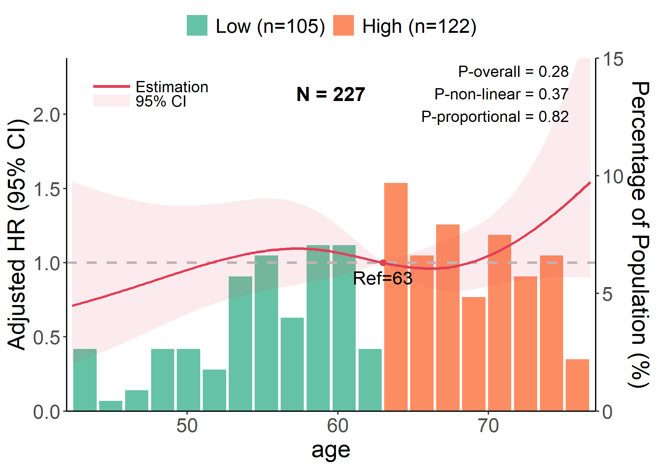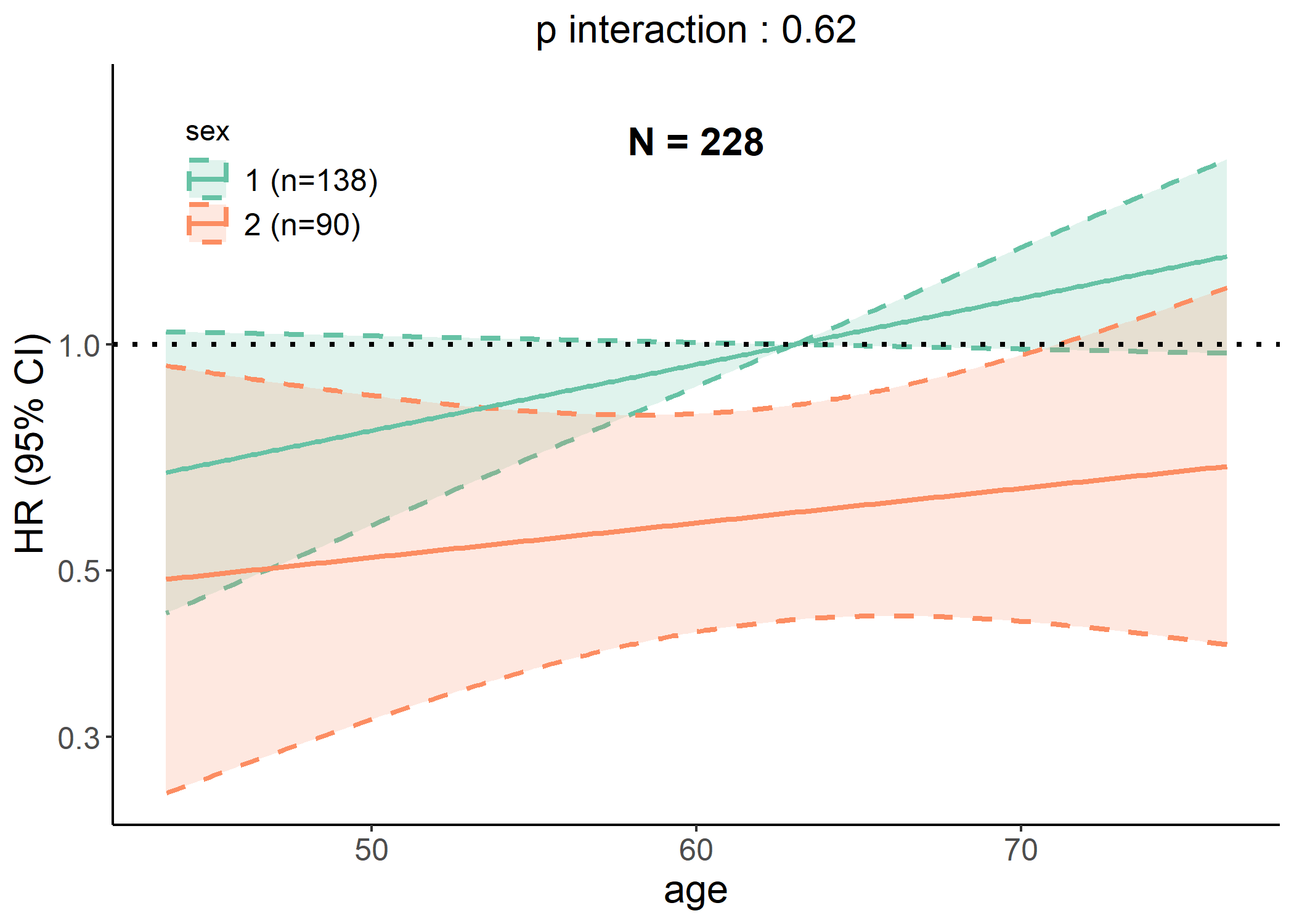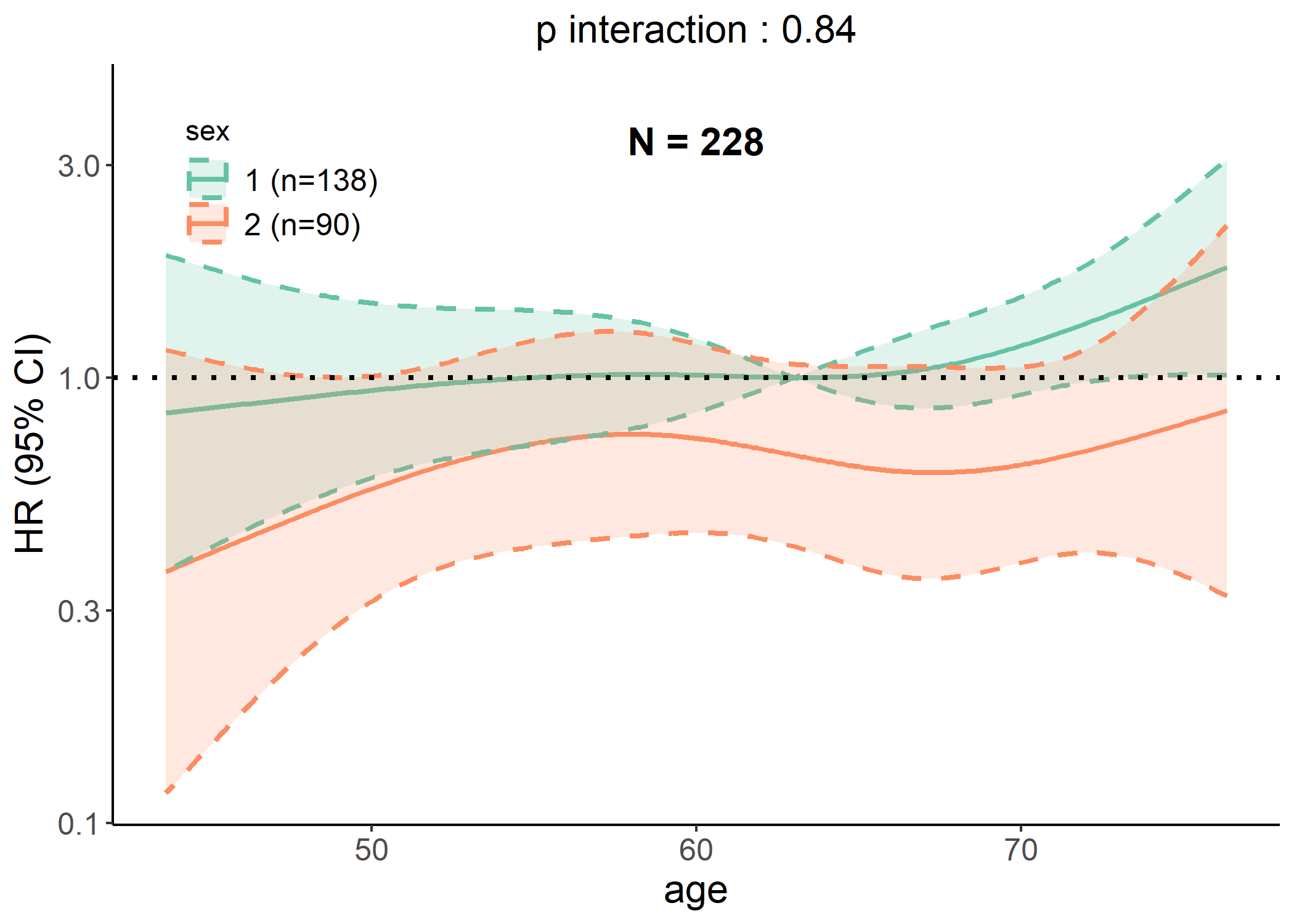 p #> Warning in rcs_plot(cancer, x = "age", y = "status", time = "time", covars =