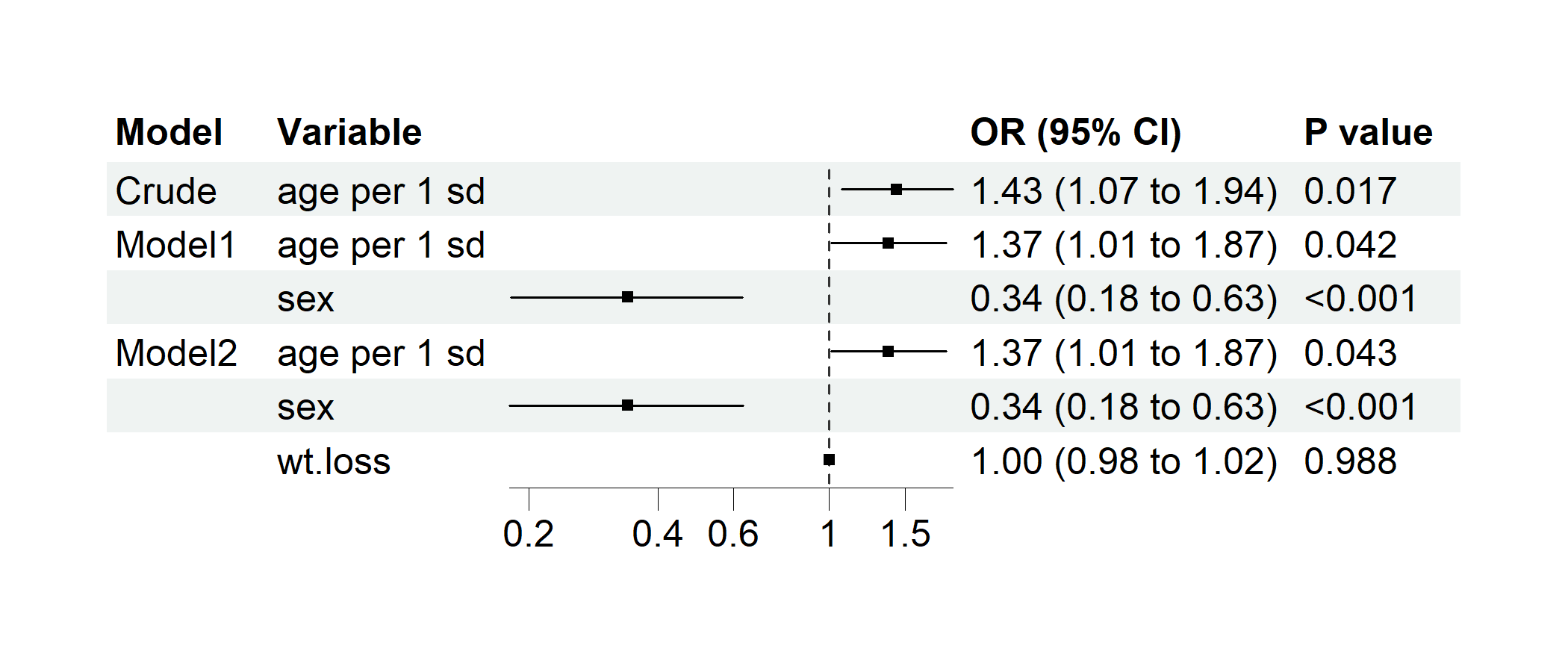 Model2 = c("age per 1 sd", "sex", "wt.loss")