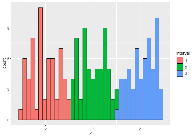 ggplot(data.frame(Z = Z, interval = as.factor(interval))) +