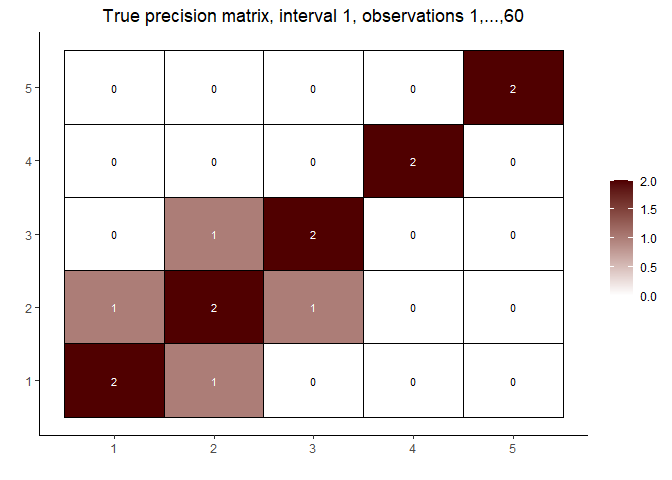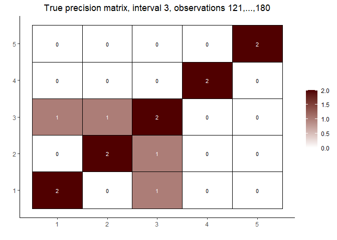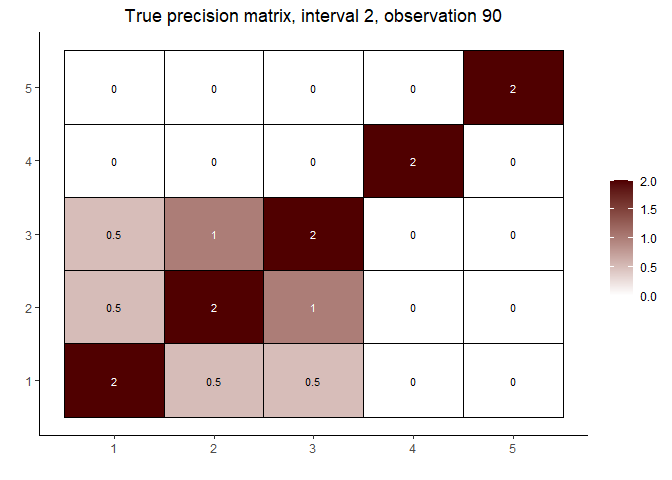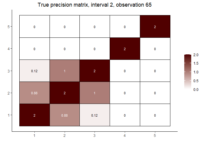 ggtitle(paste("True precision matrix, interval 2, observation", j + n1)))