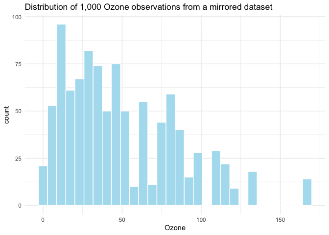 labs(title = "Distribution of 1,000 Ozone observations from a mirrored dataset")