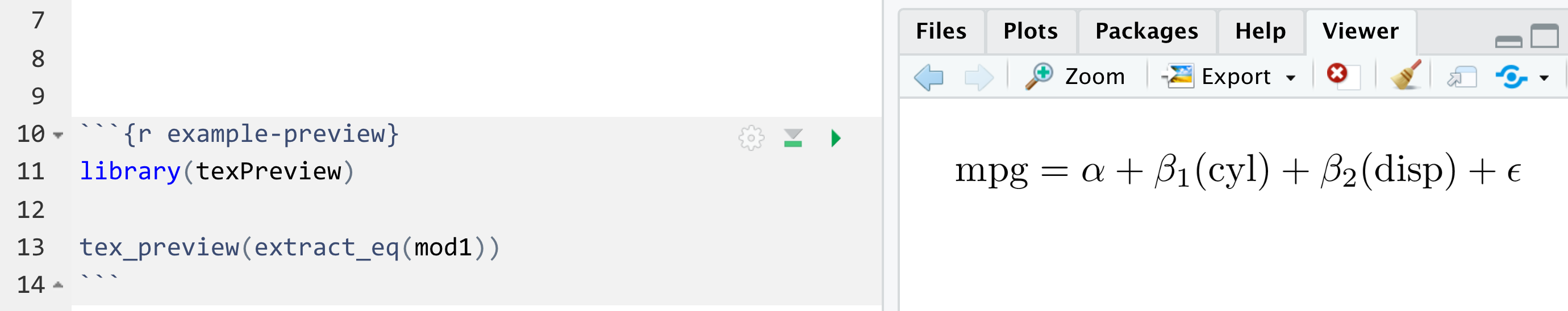 package to preview the equation in RStudio: