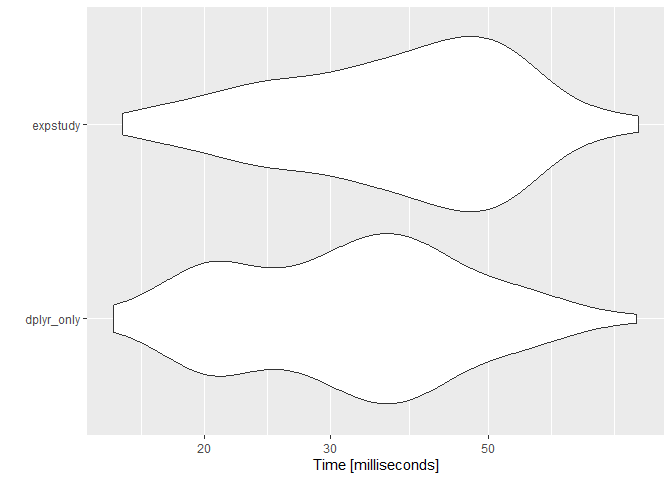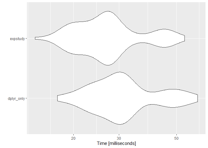 Note that expstudy is calculating more than the AE ratio metric. Without those additional metrics, performance with expstudy actually surpasses performance without: