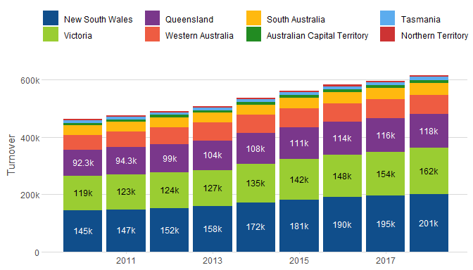bar_plot(subset(aus_retail, year(Month) >= 2010),
