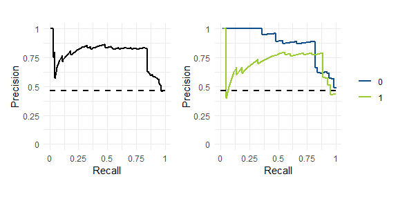 pr_plot(df, "pred", "lab", group = "sample(c(0, 1), n(), replace = TRUE)")