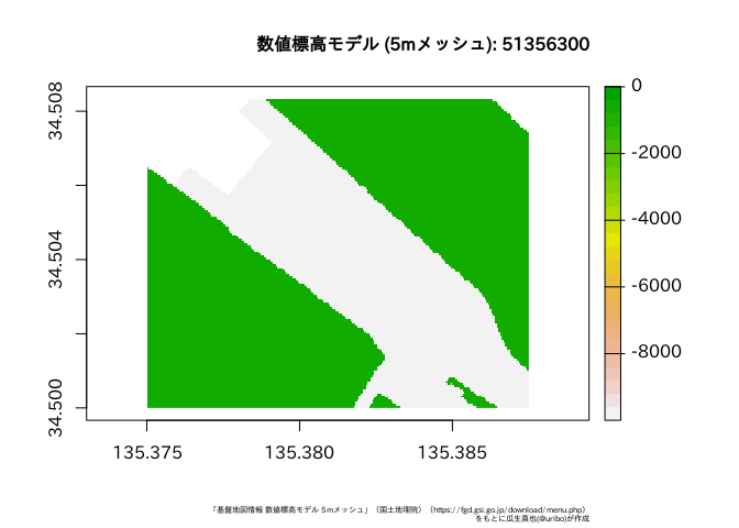 title(main = "数値標高モデル (5mメッシュ): 51356300",