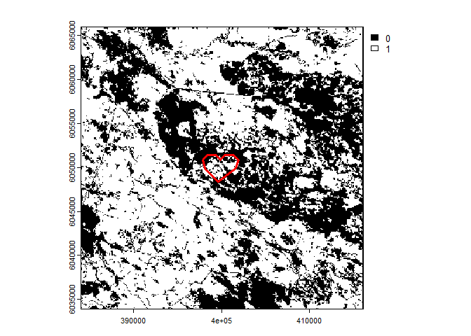 layer is a binary raster where a value of 1
