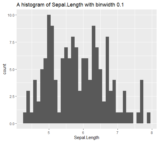 iris histogram_plot(Sepal.Length, binwidth = 0.1)