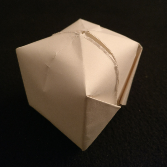 A fusen is an origami. It is a flat piece of paper that you fold in a specific way so that at the end, you can magically inflate it to let a nice box appear.