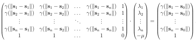 where μ is an constant from the method of Lagrange’s multipliers and the function γ(h) = ∫γ(h; t)*dt* is called the trace-variogram, where, for each t, γ(h; t) is the semivariogram for the process χs1(t), …, χsn(t). More precisely, for each t, a weakly and isotropic spatial process is assumed for χs1(t), …, χs**n(t) and the integration of the semivariogram is carried out. Usually, the integration in the equation (1) is approximated using a modified version of the empirical semivariogram. In this pcackage, we have used the Legendre-Gauss quadrature, which is simple and it explicitly used the definition of the semivariogram.