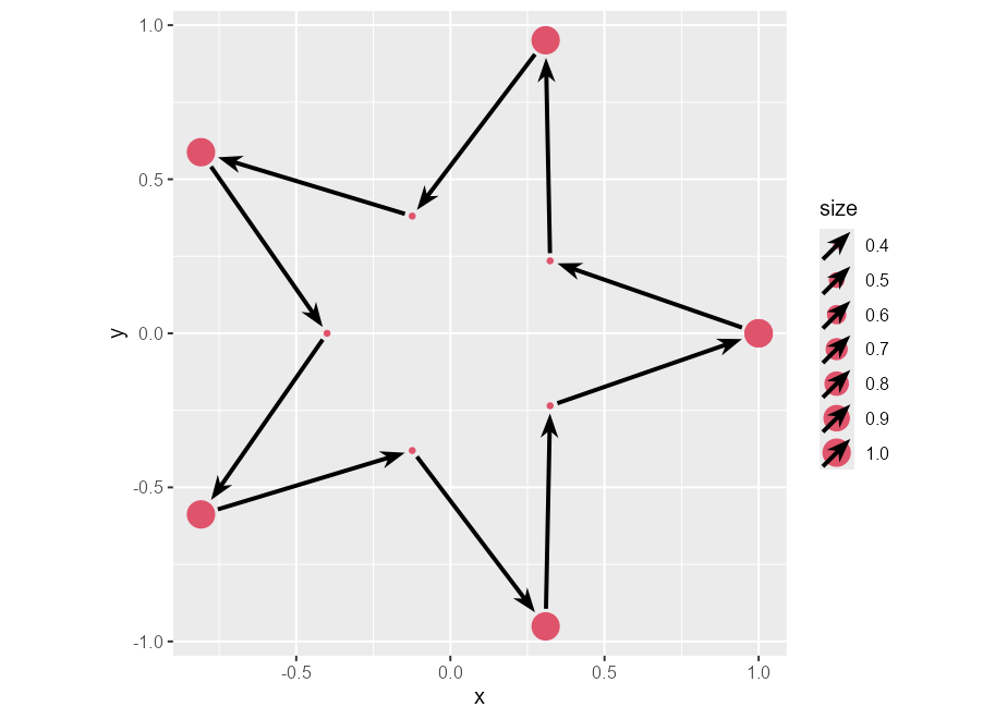 + geom_arrow(aes(linewidth = I(arc))) # Identity scale for linewidth p