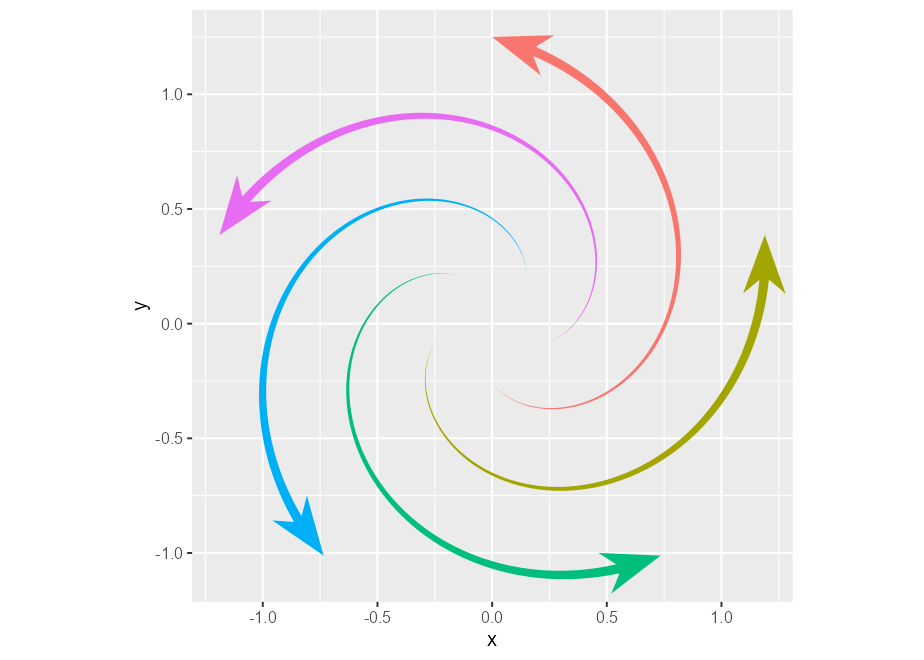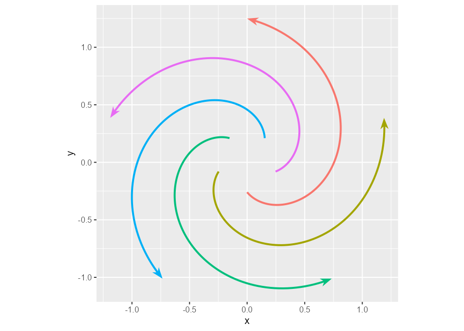 <- ggplot(whirlpool(5), aes(x, y, colour = group)) +