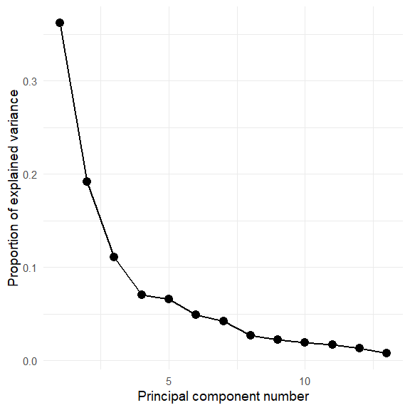 #> Proportion of Variance 0.73 0.229 0.0367 0.00518