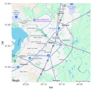 <- trek("houson, texas", "waco, texas", structure = "route")