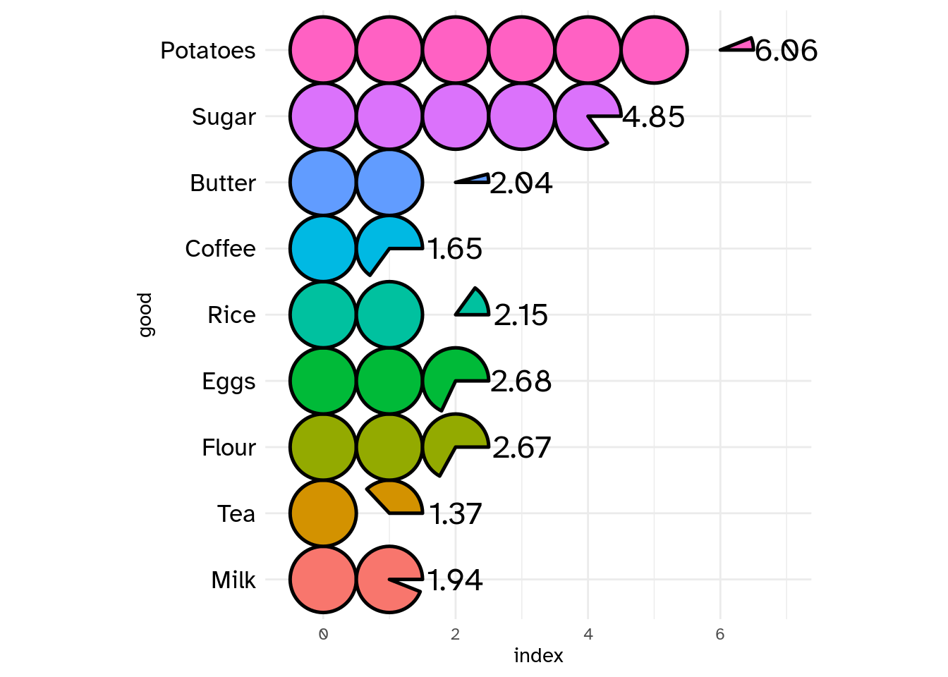prod_df good = c("Potatoes", "Sugar", "Butter", "Coffee", "Rice", "Eggs", "Flour", "Tea", "Milk"),