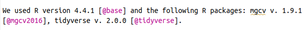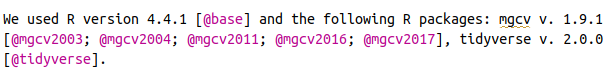 If you use one or several packages from the tidyverse, you can choose to cite the ‘tidyverse’ rather than the individual packages: