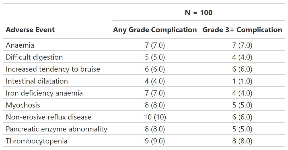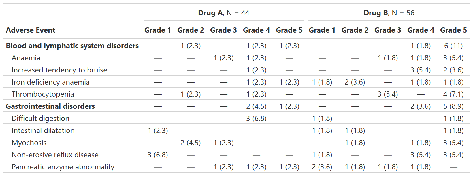 select(system_organ_class, adverse_event, grade, drug_attribution, patient_id) |>
