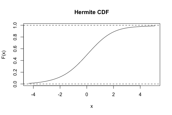is an R package that facilitates the estimation of the probability density function and cumulative distribution function in univariate and bivariate settings using Hermite series based estimators. In addition, hermiter