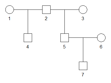 For simplicity we create a pedigree containing all the three relationships we are interested in.