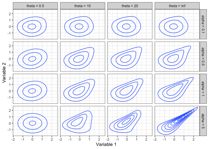to match the syntax of the CopulaModel package).Here are some examples, starting with the density of an IG copula: