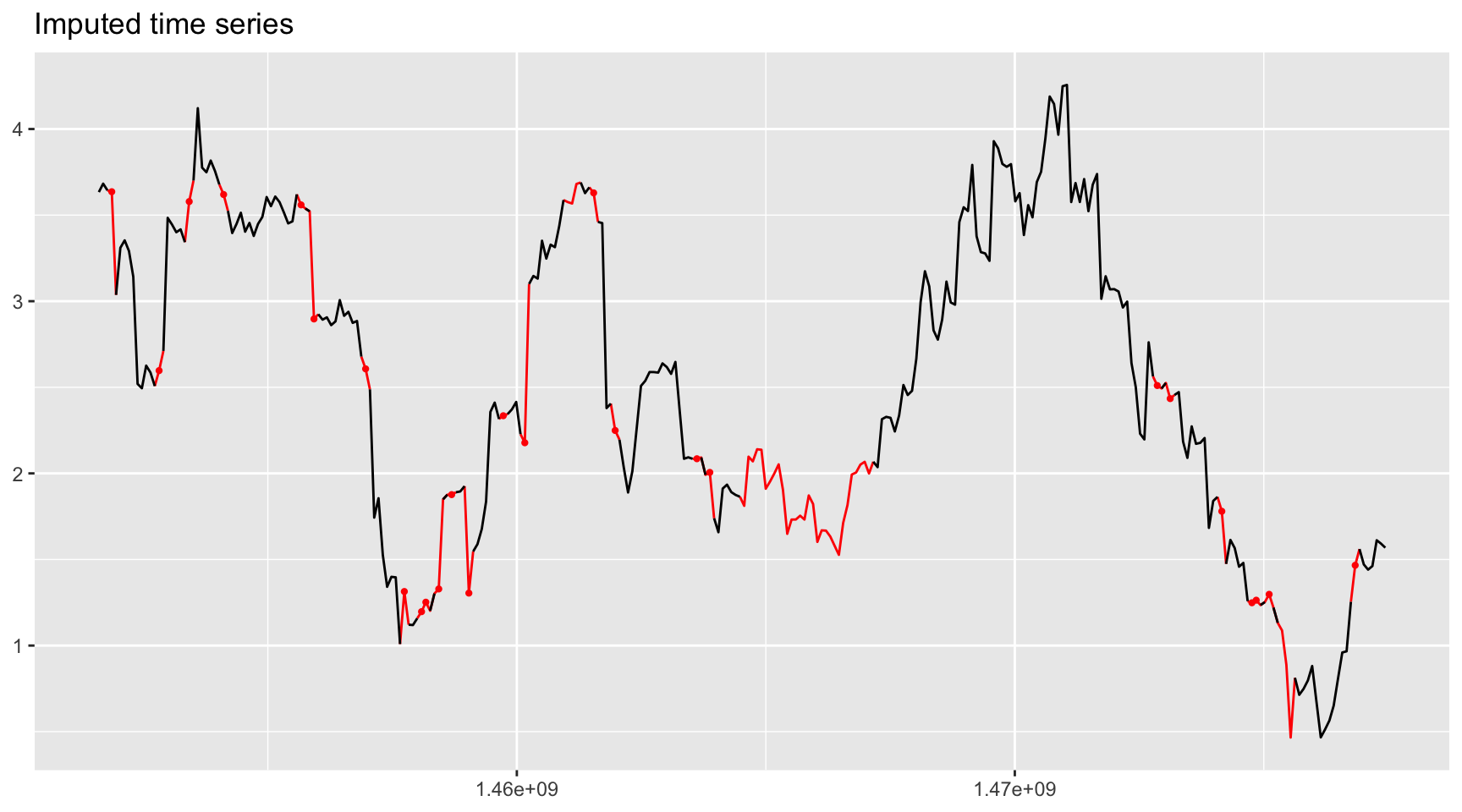 We can then impute one of the time series and plot it: