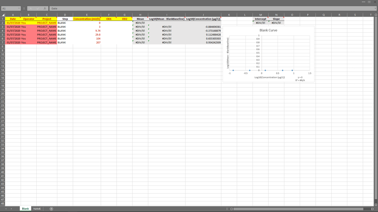 An Excel template is provided within the app to help users import their experiments in an easy way.