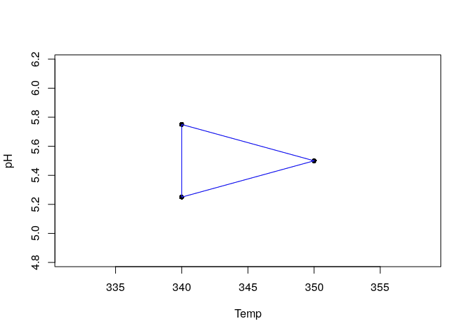 yield <- labsimplex(n = 2, start = c(350, 5.5), var.name = c('Temp', 'pH'),